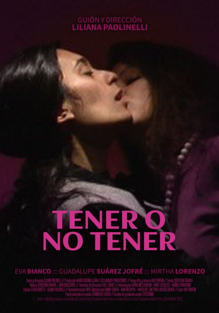 Tener o no tener (1995). Guion y dirección: Liliana Paolinelli. Fotografía: Ada Frontini. Edición: César Boretti y Liliana Paolinelli. Elenco: Eva Bianco, Guadalupe Suárez Jofré, Mirtha Lorenzo. Duración: 43’.