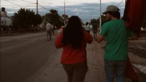 En algún punto, esa deficiencia proviene de las decisiones que toma el documental. Y es que allí es donde aparece la diferencia entre tener una mirada y construir un concepto. Está claro que el documental de Martín Céspedes tiene una mirada: está del lado de los campesinos, los registra no como si se trataran de algo extraño –incluso en los momentos en que se acerca a cierto tono antropológico-, sino como pares a los que sigue –a veces literalmente- en su camino. Y de la misma manera su mirada implica un rechazo a lo institucional, establecido como límite: el poder judicial como límite a la consecución de justicia; las fuerzas de seguridad que rodean las marchas y el juzgado, como límite al avance de los campesinos en sus reclamos, incluso como una amenaza latente sobre ellos. Pero lo que no consigue construir con esas imágenes y esa mirada es un concepto que las abarque y las potencie, que las integre en un relato sólido de un colectivo que se intuye poderoso y complejo.