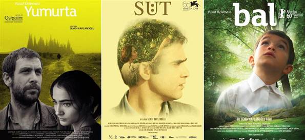 Ese lugar es la casa, y el poeta siempre vive queriendo volver a ella. Yusuf es un poeta, y su trilogía es la casa cinematográfica que le construyó Semih Kaplanoglu para que viva siendo uno y muchos a la vez, acaso todos. Huevo, Leche y Miel son las tres películas que la componen. En la primera, Yusuf es un hombre de alrededor de 40 años que vuelve de Estambul a su pueblo para el entierro de la madre y se va quedando en la casa materna, atendido por una chica que continua tejiendo la prenda emprendida por aquella. En la segunda, Yusuf es un joven de menos de 20 años que vive con su madre, tironeado entre seguir aferrado a ella hasta llegar al extremo de impedirle casarse de nuevo, o irse y hacer su vida propia en la ciudad, donde conoció a un chica que comparte su interés por la literatura (y es la misma Saadet Aksoy que encarnara a la joven tejedora de la película anterior), lejos del horizonte laboral de la mina que consume el cuerpo y el espíritu de un amigo al que quiere pero no evita perjudicar aunque más no sea por omisión, lejos del pueblo chico incapaz de satisfacer su curiosidad cultural, lejos de esa infancia que es la patria de todo poeta y a la que ni siquiera el ritual del servicio militar obligatorio consigue ponerle fin debido a la epilepsia que le detectan, herida o marca ontológica imborrable. En la tercera, Yusuf es un nene de no más de 7 años al que un accidente deja sin infancia y frente al desafío de aprender a leer algo más que los signos escritos en el libro de lecturas escolar. Entre las tres películas, filmadas en 2007, 2008 y 2010, hay una variedad de correspondencias y actores que se repiten en roles similares, pero no constituyen una secuencia cronológica sucesiva.