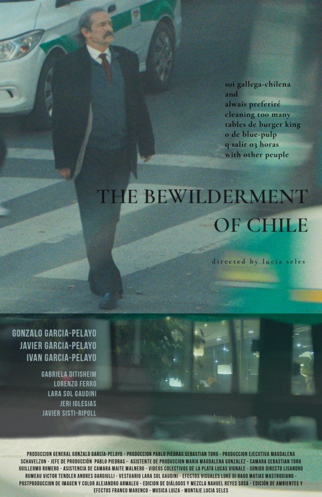 The bewilderment of Chile (Argentina, 2025). Dirección y guión: Lucia Seles. Edición: Lucia Seles. Elenco: Lorenzo Ferro, Lara Sol Gaudini, Gabriela Ditisheim, Gonzalo García Pelayo, Iván García Pelayo, Javier García Pelayo, Manuel Besedovsky, Martín Bussel.