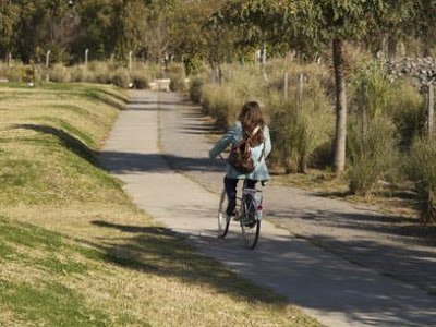 Y ahí es donde entra Sarmiento en esta película. Porque si dije que Viola es Shakespeare incompleto, es porque Violaes Shakespeare completado por Sarmiento. Y el movimiento, y el viaje, tiene mucho que ver con la complicidad –generada por Piñeiro– entre el autor inglés y el sanjuanino. Porque, para esta historia, donde Shakespeare es campo, Sarmiento es ciudad, y donde Shakespeare es ciudad, Sarmiento es campo. Entonces, de a retazos de mujeres, el director hace que su Sarmiento (que en su literatura de viajes habla tanto de remiendos y de ciudades) emparche a su Shakespeare. Y entonces Viola, la “real” y no la que hace de actriz, anda todo el tiempo en bicicleta. Viaja de acá para allá trabajando: entrega a domicilio los DVD’s que vende con su novio. Viola viaja, entonces, pero viaja por la ciudad, y lo aclara todo el tiempo: en cada uno de los encuentros que tiene con sus clientes –con algunos, vemos y nos dicen, hasta tuvo alguna historia (y siguen las líneas de fuga)– ella aclara a dónde va después: El Cid, Paternal, Villa Crespo… Viola se mueve por la Ciudad de Buenos Aires porque Viola (a diferencia de la más rohmeriana Rosalinda) es una película, también, sobre la ciudad. Y aunque quizás no es un relato sobre Buenos Aires, sí es un relato sobre la forma que tienen las grandes ciudades de imponer tiempos, geografías e itinerarios: todos los clientes le indican a Viola, que nunca espera y poco se detiene, el camino para llegar a la próxima posta. La ciudad le marca a esta mujer sus tiempos (con uno de esos hombres ella incluso se disculpa y le aclara que llegó tarde porque siempre calcula mal) y sus recorridos.
